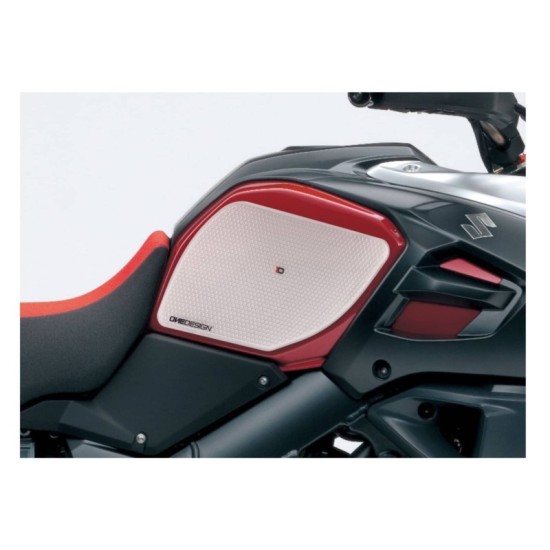 PUIG ADESIVO SERBATOIO SPECIFICO LATERALE SUZUKI DL1000 V-STROM 14-19 TRASPARENTE. Dimensioni (HxL): 197.6x330.2 mm. Materiale: gomma, conferendo alla moto un aspetto unico e sportivo, evitando i graffi in un'area sensibile. Grazie al design Onedesign, questo pezzo conferisce al serbatoio una maggior presa e aumenta il controllo del pilota sulla moto.